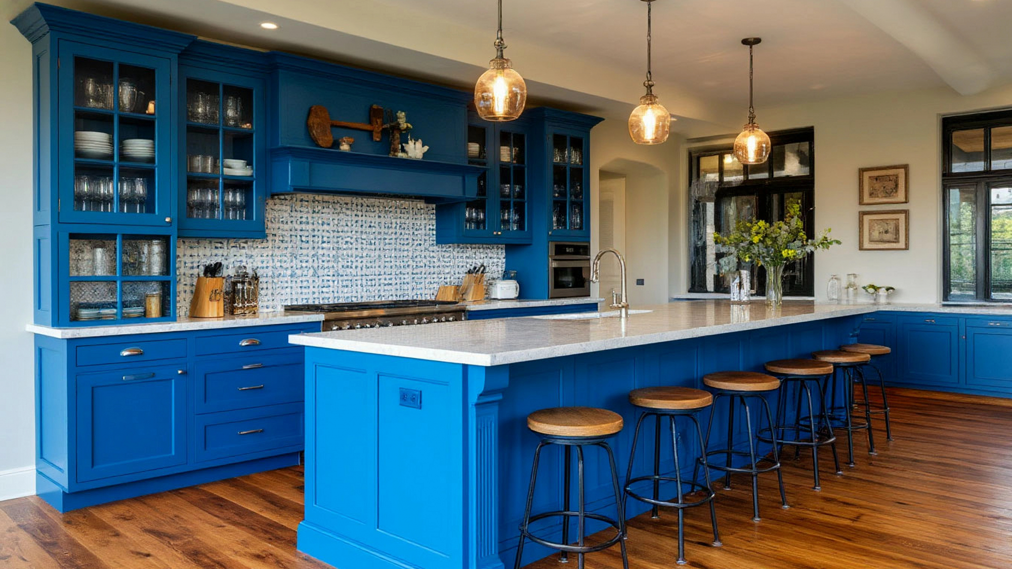 Кухня "Кобальт" — это сочетание стиля, функциональности и домашнего уюта. Яркий синий цвет фасадов задаёт тон, светлая столешница визуально облегчает интерьер, а остров с барными стульями становится центром активности. Здесь удобно готовить, принимать гостей и проводить время с семьёй, наслаждаясь современным дизайном и комфортом. Каждый элемент кухни поддерживает атмосферу барного стиля, но при этом остаётся уютным и домашним, создавая пространство, где хочется оставаться долго.