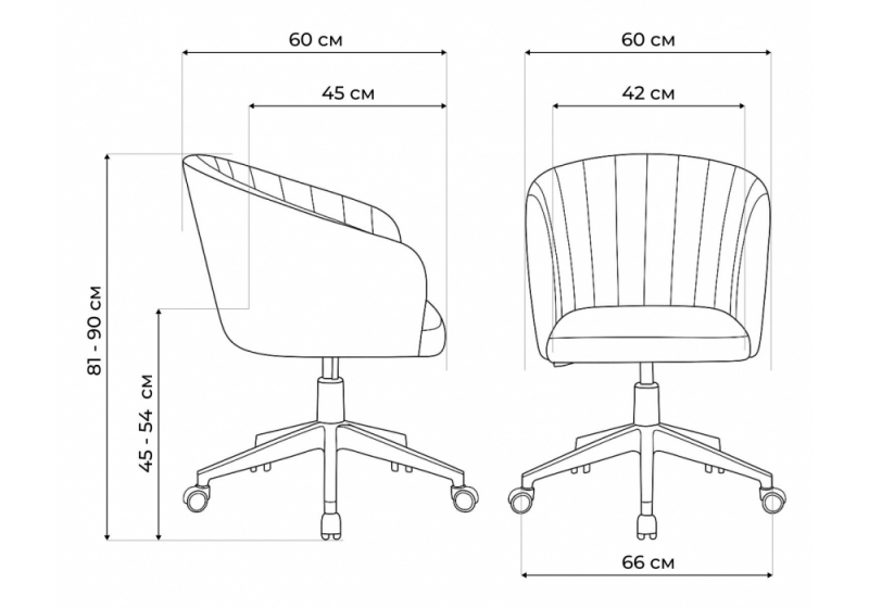 Высота сиденья максимальная: 54 см Диаметр крестовины: 66 см